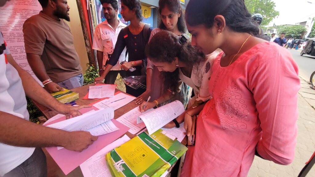 இதேவேளை, யாழ்ப்பாண பல்கலைக்கழக சமூகம் முன்னெடுத்துவரும் கையெழுத்து போராட்டம் மூன்றாவது நாளாகவும் தொடர்கிறது.