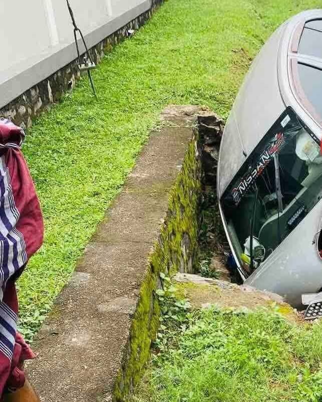 ஓட்டுநர் தூங்கியதால் கட்டுப்பாட்டை இழந்த கார்,வீதியின் வலது பக்கம் விலகி மதகு ஒன்றிற்குள் விழுந்துள்ளது.