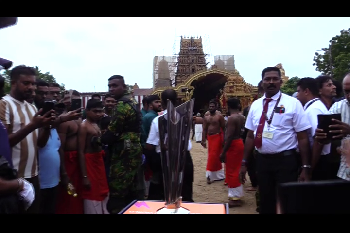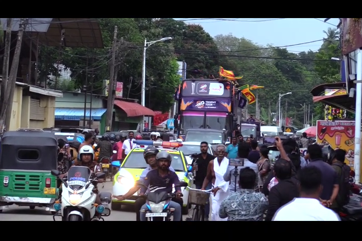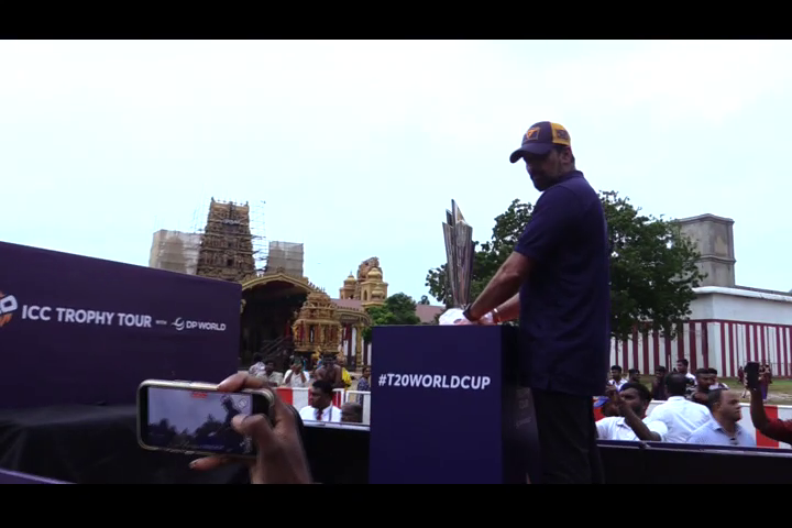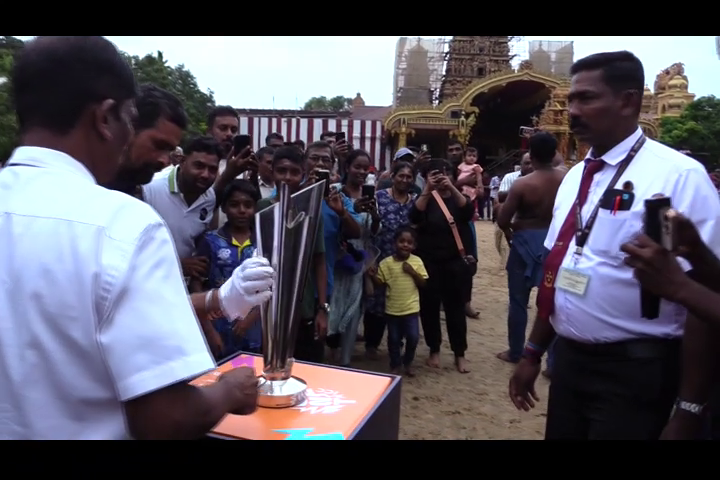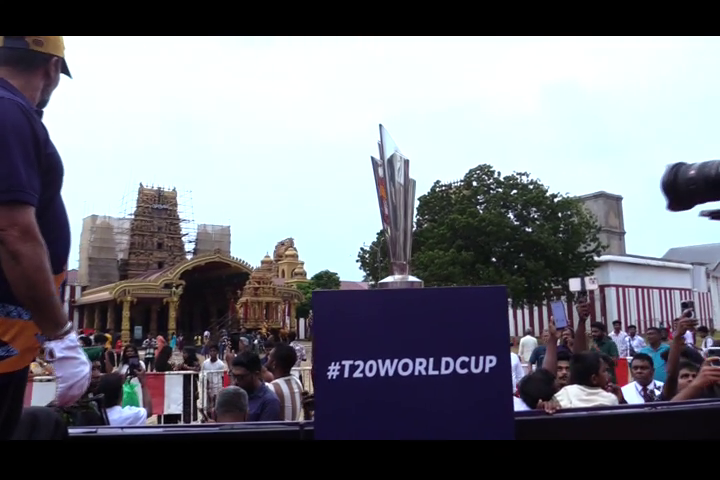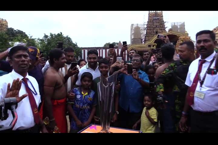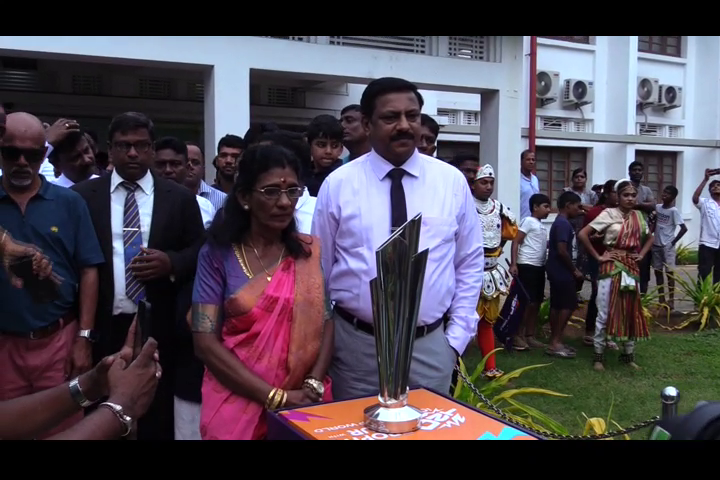 இலங்கை மற்றும் இந்திய நாடுகள் இணைந்து நடாத்தும் 20 க்கு 20 உலகக் கிண்ண கிரிக்கெட் தொடருக்கான வெற்றி கிண்ணம் யாழ்ப்பாணத்துக்கு இன்று (01) வாகன பேரணியாக எடுத்து வரப்பட்டது.