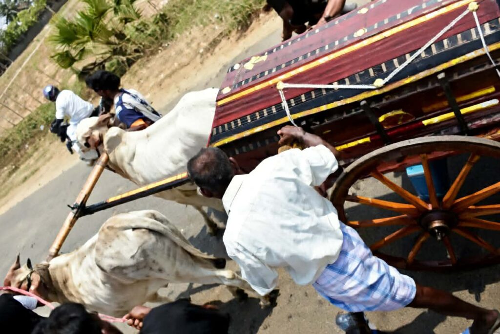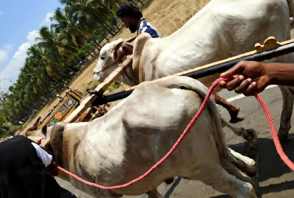 எஜமானின் உடலை சுமந்து சென்ற காளைகளின் முகத்திலும் சோக உணர்வு காணப்பட்டது.