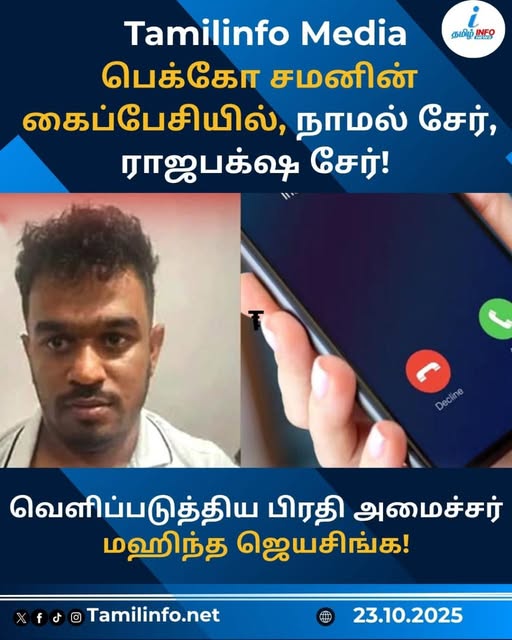 இந்தோனேசியாவில் வைத்து கைது செய்யப்பட்டு இலங்கைக்கு கொண்டுவரப்பட்ட பெக்கோ சமன் என்ற பாதாள உலகக் கும்பல் பிரதிநிதியின் கைப்பேசியில்,நாமல் சேர், என்றும் ராஜபக்‌ஷ சேர் என்றும் எண்கள் பதிவு செய்யப்பட்டுள்ளதாக பிரதி அமைச்சர் மஹிந்த ஜெயசிங்க சபையில் வெளிப்படுத்தினார்.