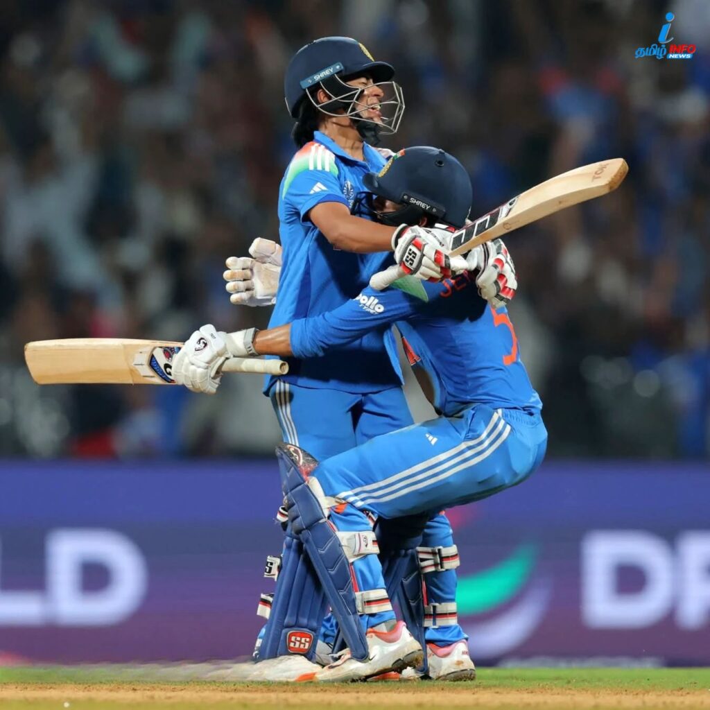 இந்த வெற்றியுடன், இந்தியா தற்போது மகளிர் உலகக் கோப்பை இறுதிப் போட்டியில் இடம் பெற்றுள்ளது . ![]()
