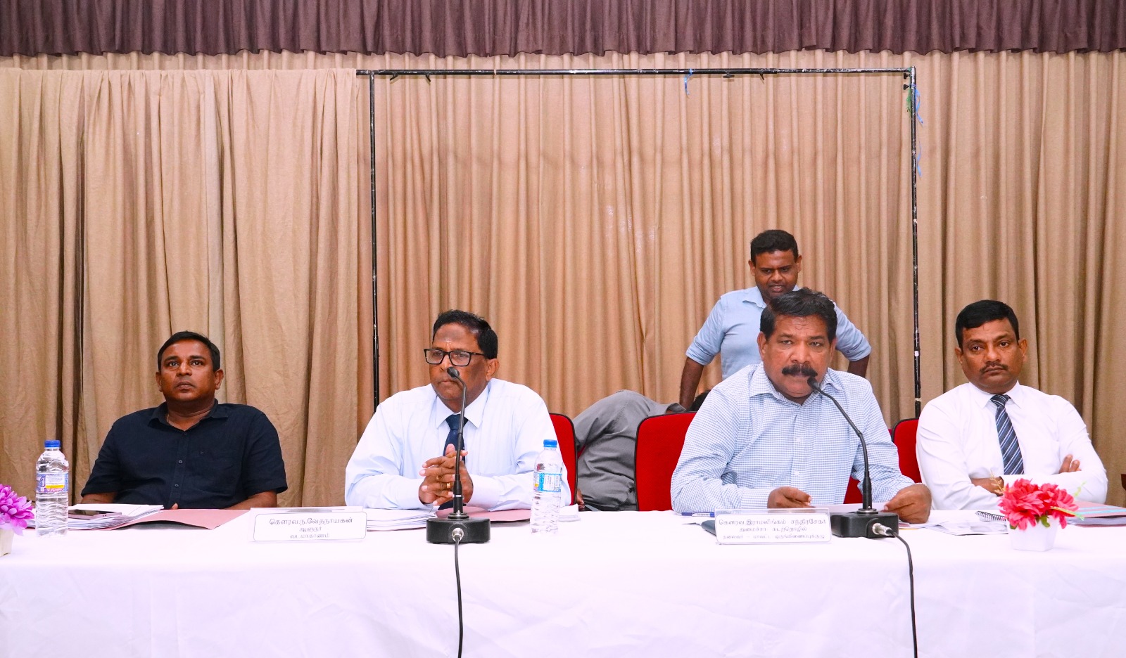 இந்த கூட்டத்தில், நாடாளுமன்ற உறுப்பினர்களான க.இளங்குமரன், சி.சிறிதரன், ஜெ.றஜீவன், உள்ளூராட்சி சபைகளின் தவிசாளர்கள், வடக்கு மாகாண அமைச்சுக்களின் செயலாளர்கள், திணைக்களத் தலைவர்கள், பொது அமைப்புக்களின் பிரதிநிதிகள் மற்றும் பாதுகாப்புத் தரப்பினர் எனப் பலரும் கலந்துகொண்டிருந்தனர்.