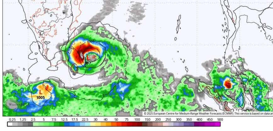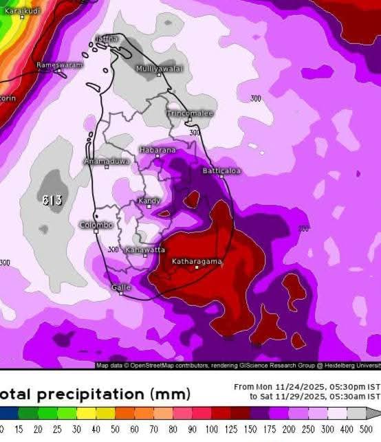 இந்த நாட்களில் அதாவது எதிர்வரும் 28 முதல் 29 வரை பல பகுதிகளில் திரட்டிய மழைவீழ்ச்சியாக 350 மி.மீ. க்கு மேல் கிடைக்க வாய்ப்புள்ளது.