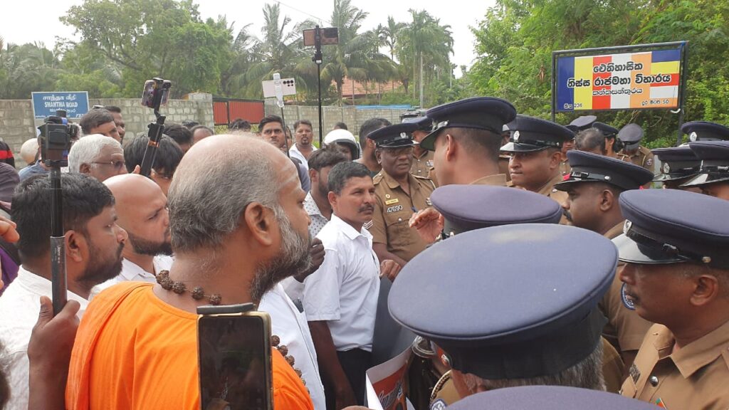 இந்தநிலையில் போராட்டம் இன்று முன்னெடுக்கப்பட்டபோது விகாரையை அண்மித்த சூழலில் பெருமளவான கலகம் அடக்கும் பொலிஸார் குவிக்கப்பட்டனர்.