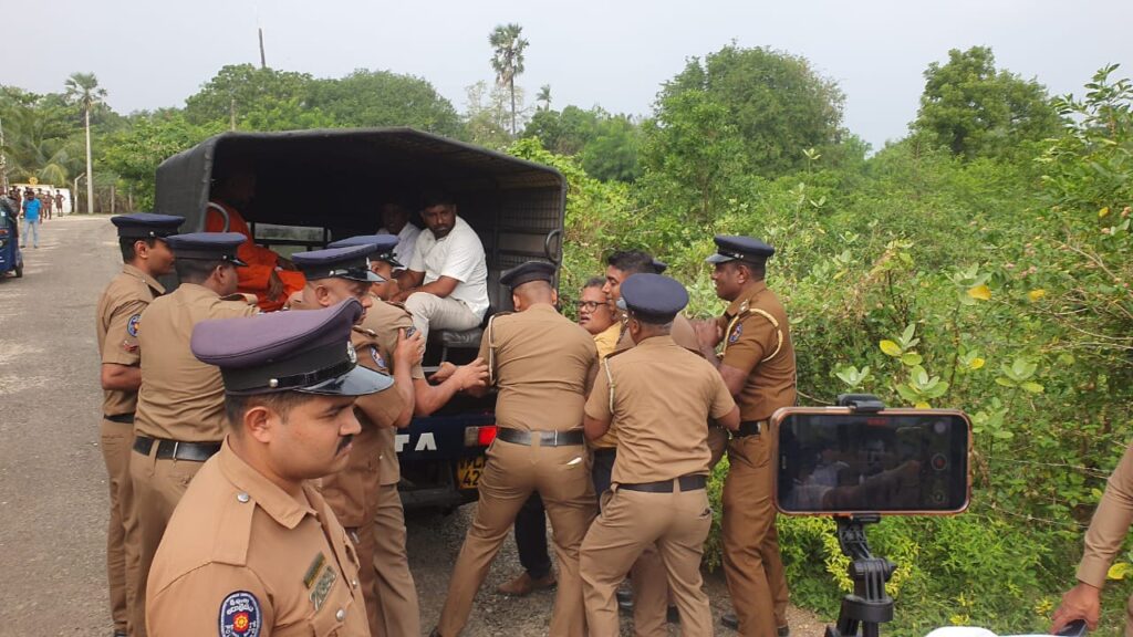 யாழ்ப்பாணம் தையிட்டியில் சட்டவிரோத அமைக்கப்பட்ட விகாரைக்கு முன்பாக இன்று(21) முன்னெடுக்கப்பட்ட போராட்டத்தில் ஈடுபட்ட மத தலைவர்கள், அரசியல் பிரமுகர்கள் கைது செய்துசெய்யப்பட்டுள்ளனர்.