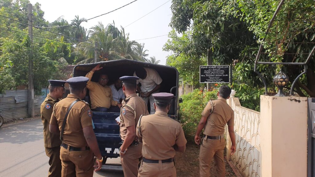 அதன்போது ,சிவகுரு ஆதீன குருமுதல்வர் வேலன் சுவாமிகள், வலி கிழக்கு பிரதேச சபை தவிசாளர் தியாகராசா நிரோஷ், வலி வடக்கு பிரதேச சபையின் தமிழ் தேசிய மக்கள் முன்னணி உறுப்பினர், ஐக்கிய மக்கள் சக்தியின் இரு உறுப்பினர்கள் உள்ளடங்கலாக ஐவர் கைது செய்யப்பட்டனர்.