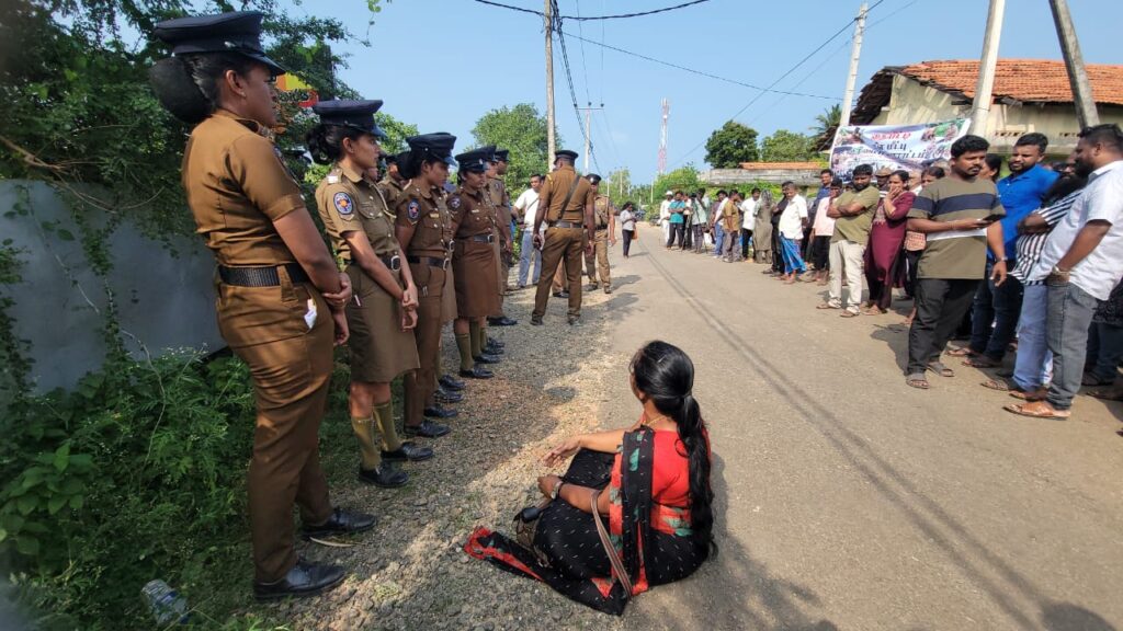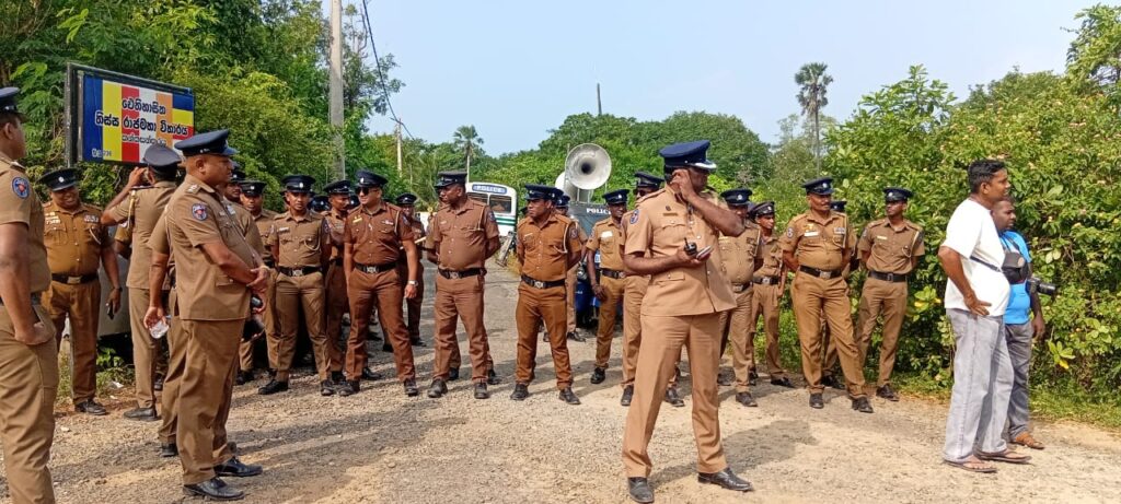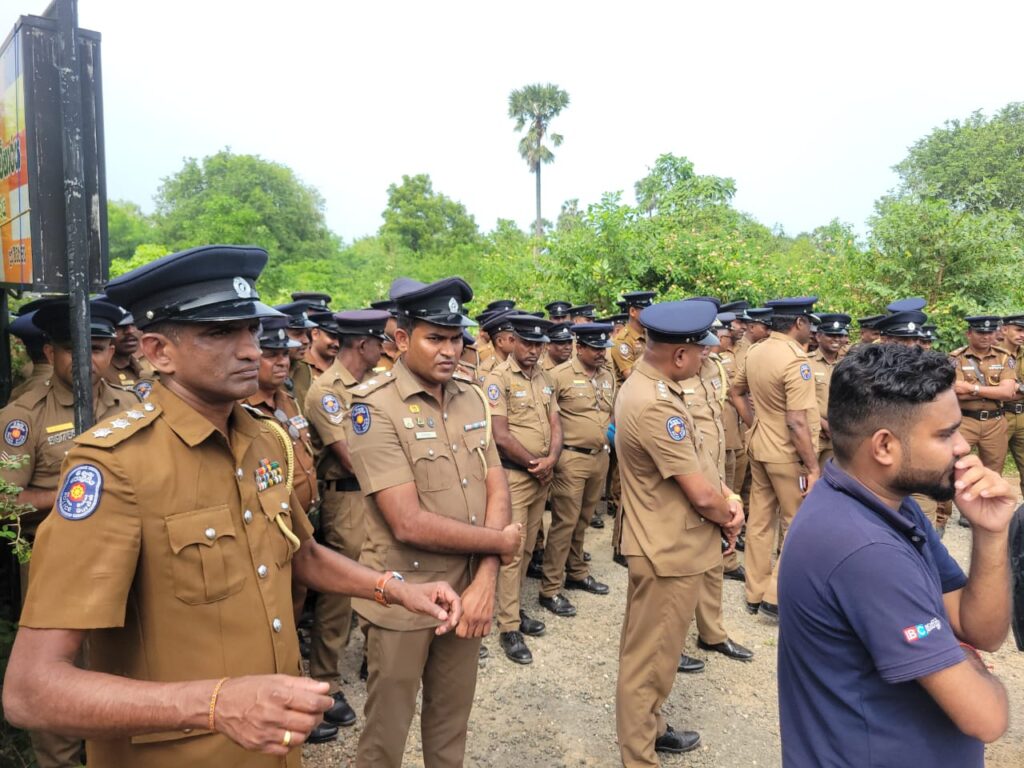 இதன்போது நூற்றுக்கணக்கான பொலிஸார் பாதுகாப்பு கடமையில் ஈடுபட்டிருந்த்தோடு, ஆர்ப்பாட்டத்தில் ஈடுபட்டவர்கள் பலருக்கு எதிராக மல்லாகம் நீதிமன்றில் பெறப்பட்ட தடை உத்தரவுகளில் உள்ளவர்களின் பெயர்களையும் ஒலிபெருக்கி மூலம் பொலிஸார் அறிவித்தனர்.