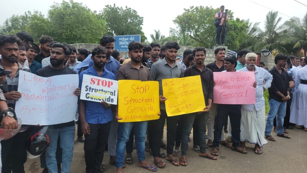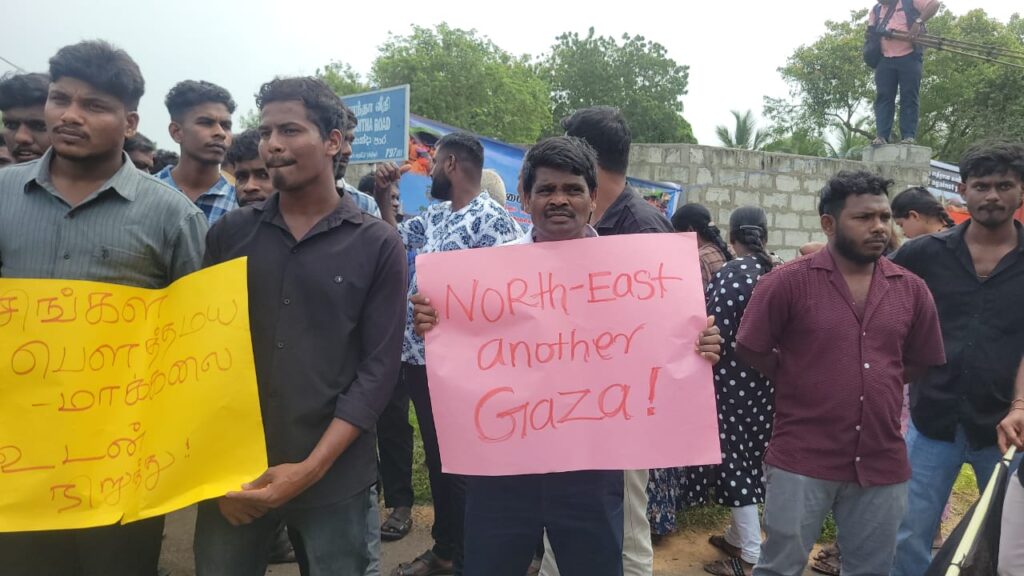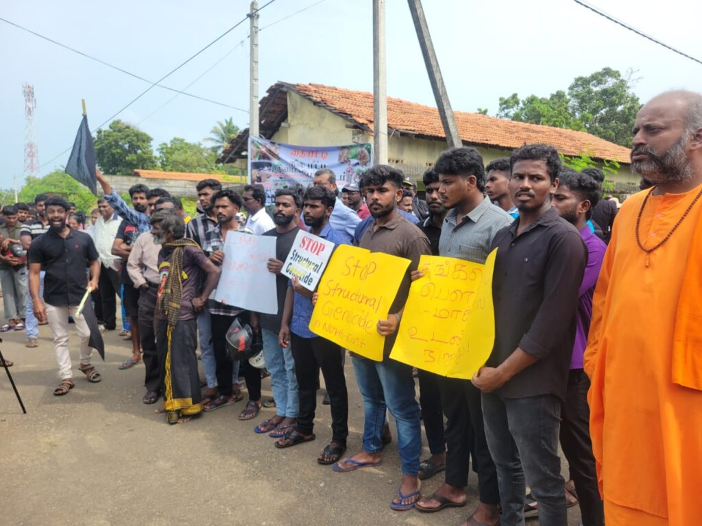 தனியார் காணிகளில் சட்டவிரோதமாக அமைக்கப்பட்ட யாழ்.தையிட்டி திஸ்ஸவிகாரை அகற்ற கோரி இன்று(03) போராட்டம் முன்னெடுக்கப்பட்டது.
